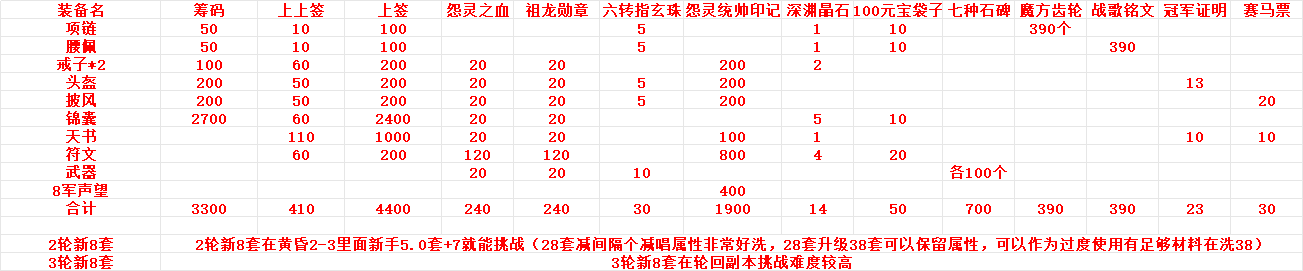 進(jìn)服可以在西升到105。獲得基礎(chǔ)天書5星龍珠籌碼可以在新手制造處換新手 5.0裝備全身加7直接可以通關(guān)1-3(主要爆銀票聲望)和2-3小狗。2輪新8材料在2-3新手5.0就可以直接通關(guān)2輪新8。這個(gè)時(shí)候就可以打產(chǎn)28套然后洗髓精煉。就可以直接通關(guān)2-3最后一個(gè)BOSS爆完美金蛋(金蛋可以開幾乎所有頂級(jí)材料硬通貨。在2-3可以完善裝備到小次頂然后挑戰(zhàn) 3-3里面有雕刻和頂級(jí)裝備材料。(特別提示如果打不過,可以領(lǐng)GM拳套輕松過關(guān),GM拳套限時(shí)每周5下午6點(diǎn)到周天下午6點(diǎn),做好 28套帶精煉全身加10可以通關(guān)所有副本,如何正確利用好拳套,優(yōu)先刷神月武器材料,3-3和輪回 38套)到這個(gè)時(shí)候大家基本就畢業(yè)了剩下的就是各個(gè)副本完善細(xì)節(jié),
