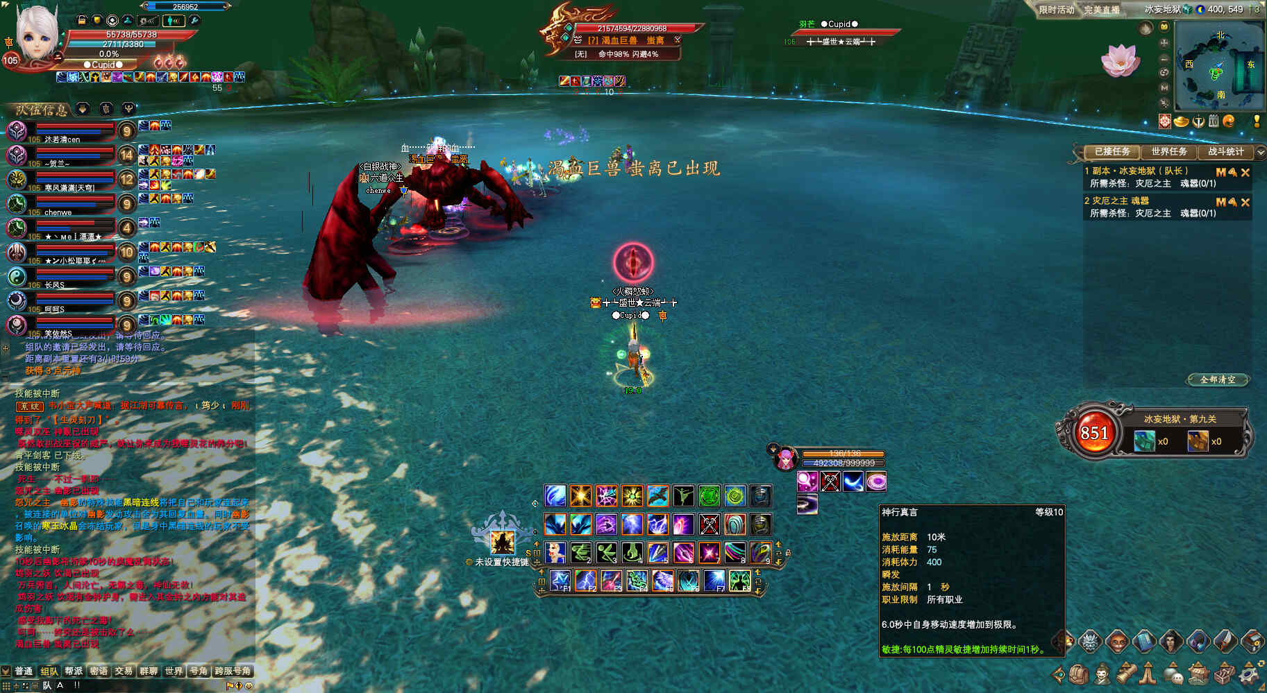 十關(guān)BOSS擁有群體攻擊傷害技能,同時(shí)也會(huì)和一關(guān)BOSS會(huì)去掉玩家有益狀態(tài)。出現(xiàn)前,MO同樣要保狀態(tài)。然后MM開陣,直至打死。