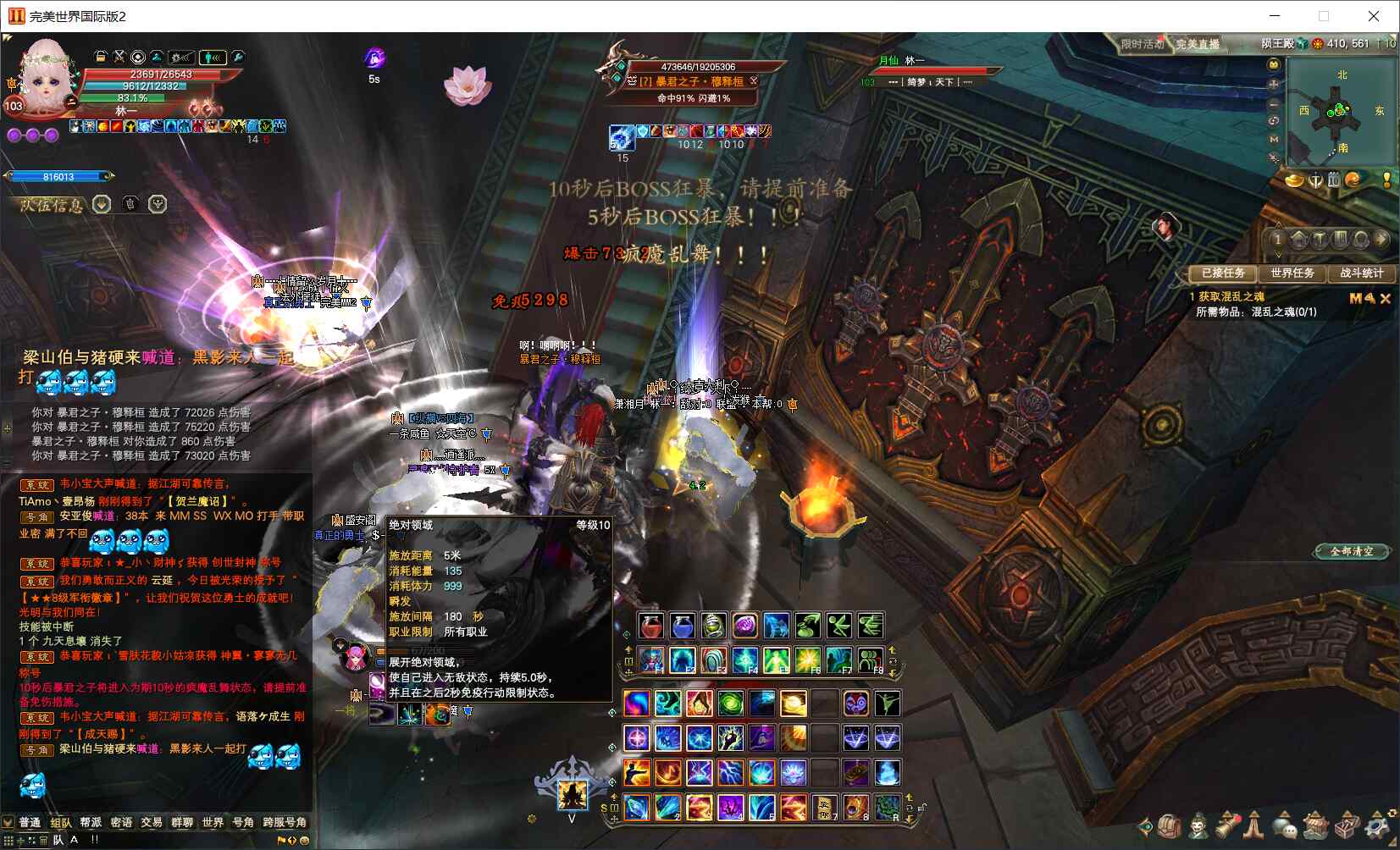 3:穆釋桓會在血量較低時,全屏提醒即將進入狂暴狀態(tài),屆時穆釋桓會有高額吸血狀態(tài),攻速以及攻擊,妖獸抗住,如果沒有妖獸,請吸引仇恨的玩家使用元素精靈的“絕對領(lǐng)域”,“高能無敵藥劑”等為自己附加無敵狀態(tài),不要再最后一步失敗哦。