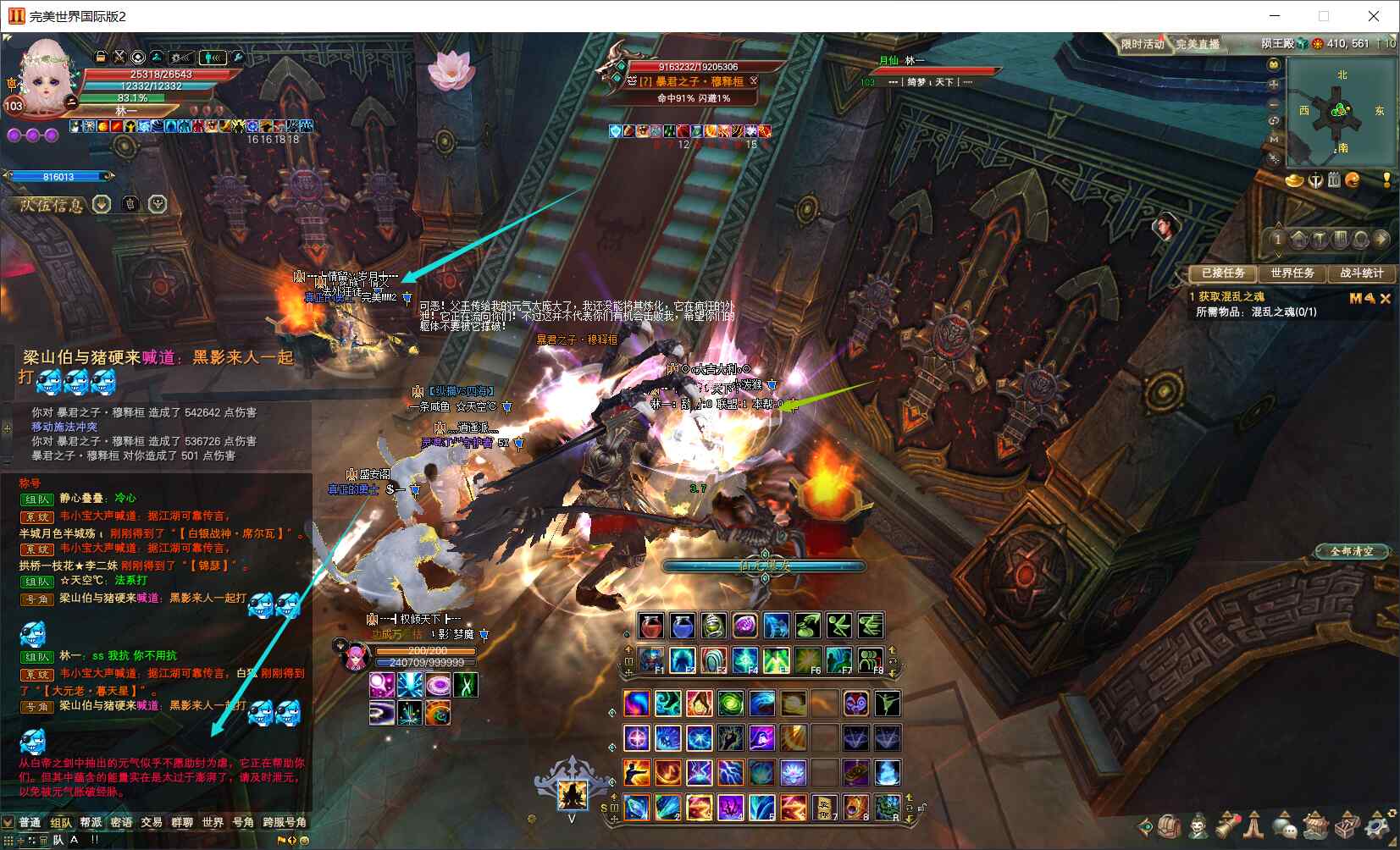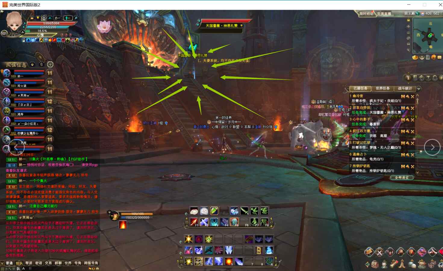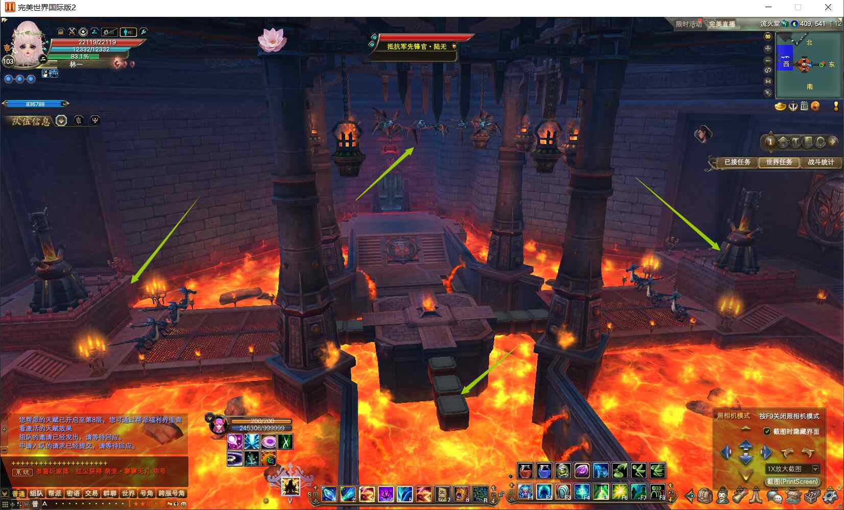 擊敗五王后,暴君之子·穆釋桓終于出現(xiàn),法系打手站左手邊藍色箭頭所示處,妖獸吸引仇恨與其他物理職業(yè)站在右手邊綠色箭頭處(老傳統(tǒng)了哈)。其機制為:
