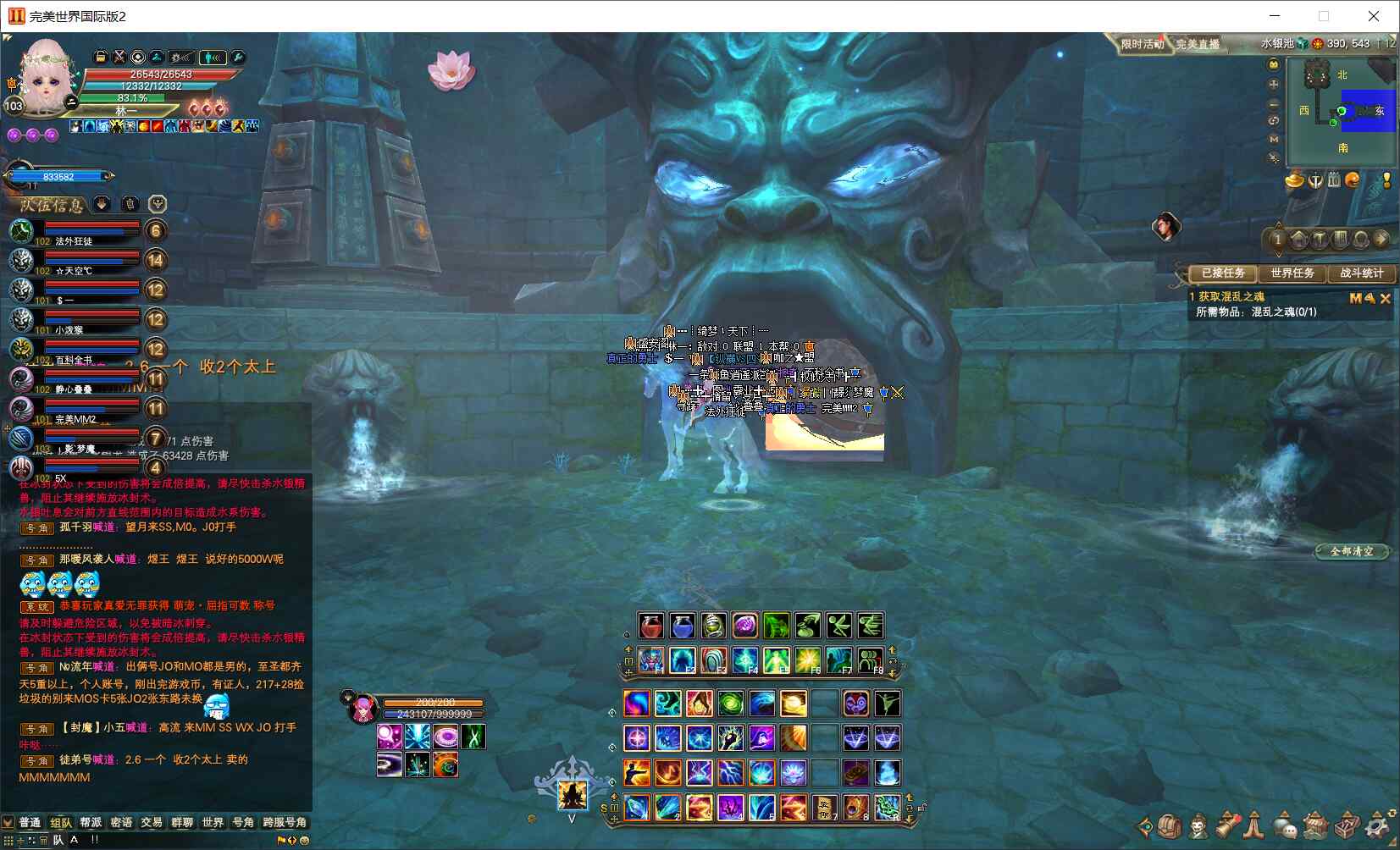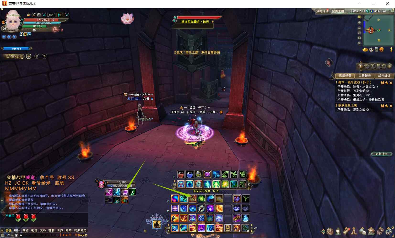 集合狀態(tài)后,盡量還是由妖獸去吸引仇恨,但是并不強求,其他重甲或者裝備好的玩家也可以吸引仇恨。羽靈使用五氣朝元繼續(xù)群加,流銀宮除了最后一關(guān)外幾乎沒有開藍陣的區(qū)域。