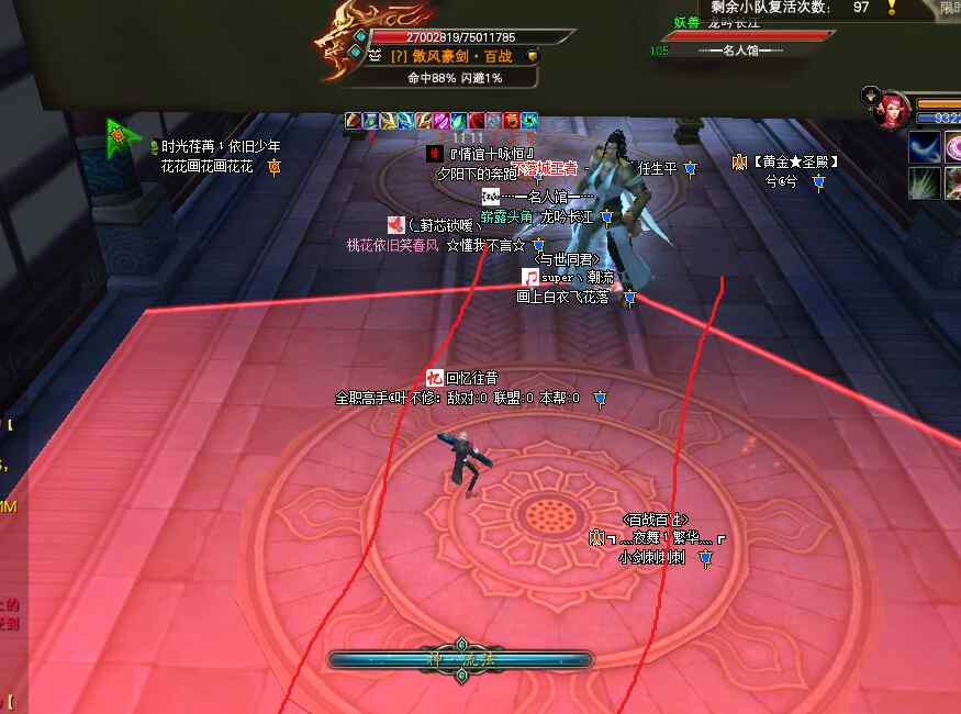 攻擊差點的剩下一點血秒不掉,也要小心劍落九天,因為很多人都是在后面這2個環(huán)節(jié)掛掉,隊員關(guān)注不到而完不成。