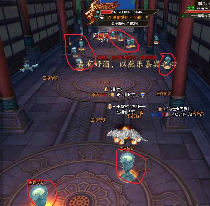 這個機制也是比較重要的,在開怪后,倒計時360秒、240秒和100秒的時候出現(xiàn)。如下圖所示,紅圈標記為酒。