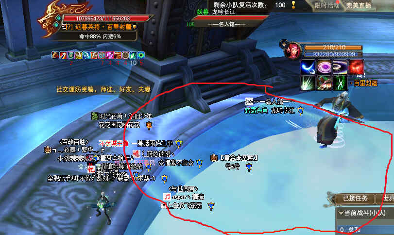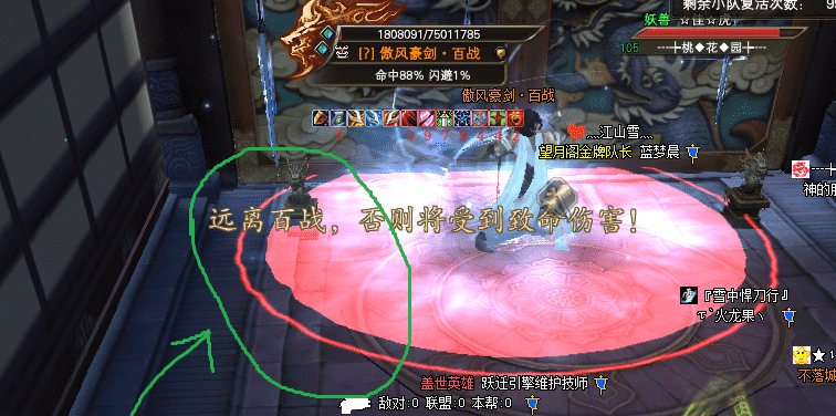 打怪過程中,屏幕提示遠離百戰(zhàn),否則將受到致命傷害時,會以BB為中心,腳下出現(xiàn)一個大紅圈,