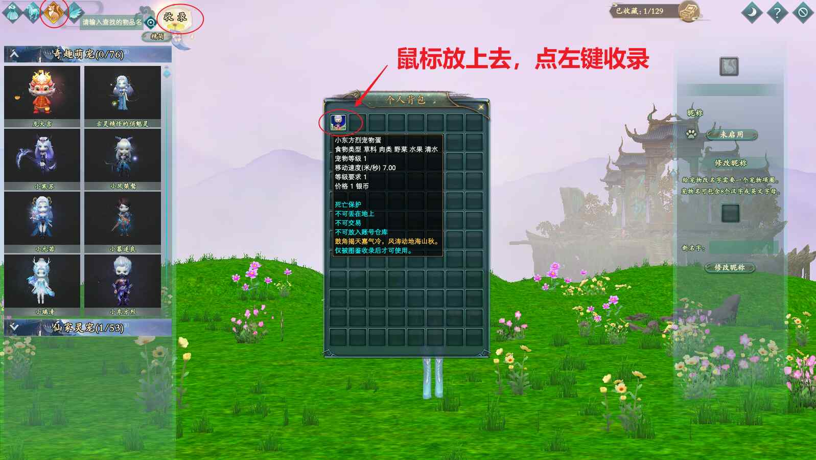 從個人背包中,點擊“圖鑒”進入。左上角選擇第三個,也就是“觀賞寵圖鑒”,然后再點擊“收錄”