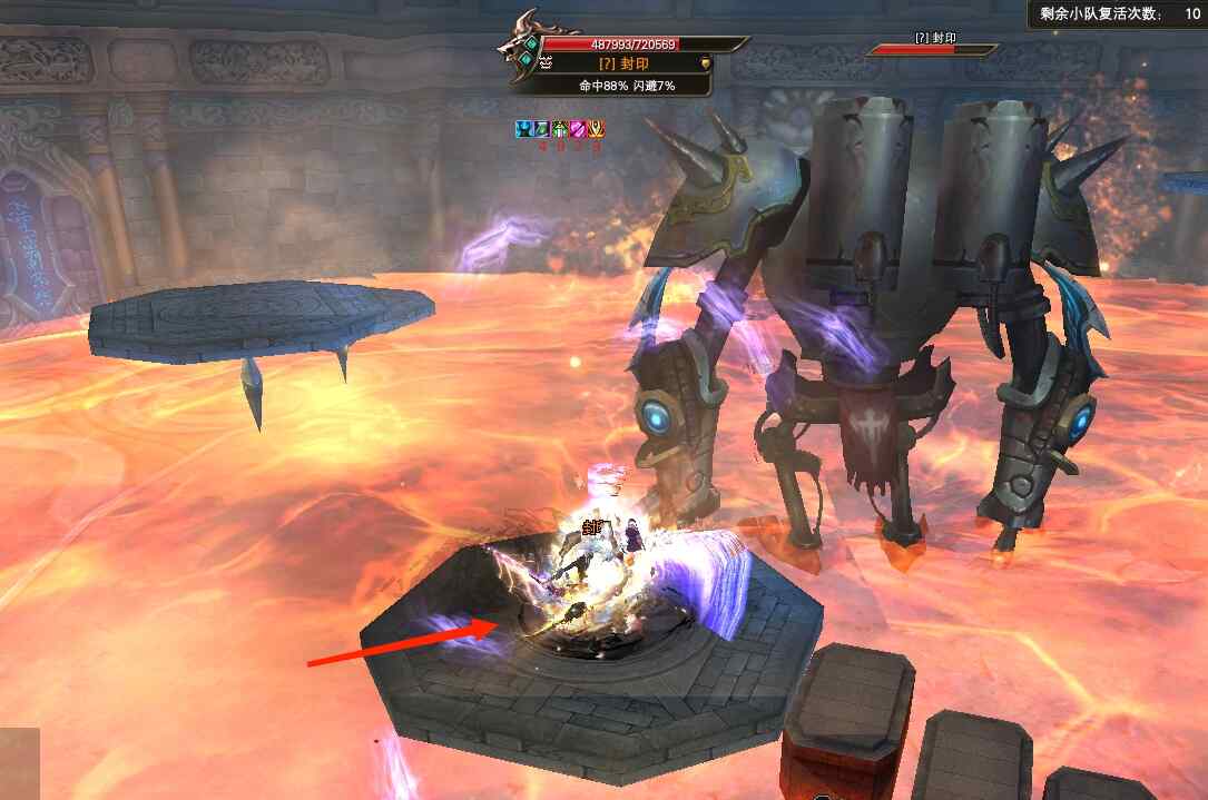 2.戰(zhàn)斗中,BOSS會(huì)隨機(jī)抓3人上臺(tái)子被“癱瘓”,建議最好用元素精靈技能“信念”逃離下來(lái)。
