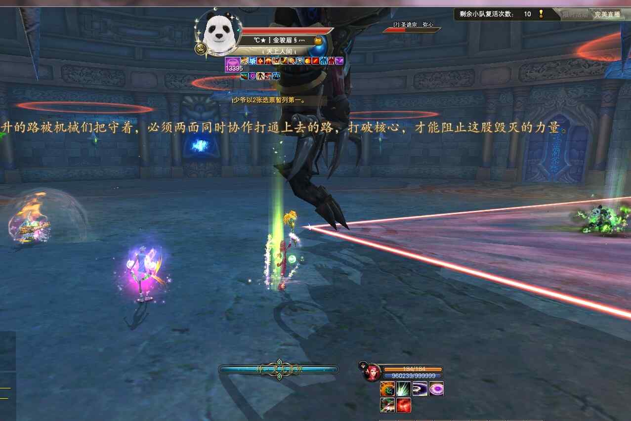 4.戰(zhàn)斗中,BOSS會(huì)多次抓人上臺(tái)子、每次抓3人,若隊(duì)伍攻擊火力猛、相對(duì)抓人次數(shù)會(huì)減少,直接打出爬樓梯機(jī)制。注意幫派基地副本復(fù)活次數(shù)有限共計(jì)10次,右上角提示“剩余小隊(duì)復(fù)活次數(shù):10!”