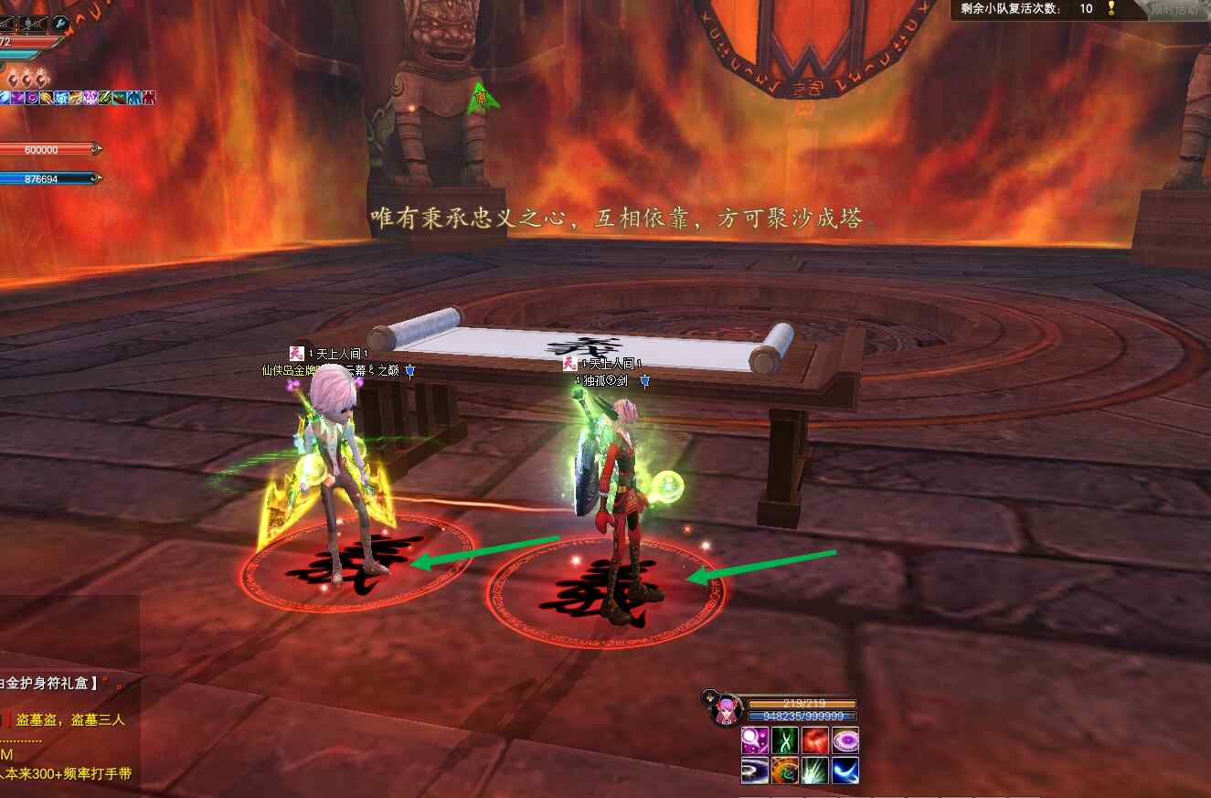 (特別提醒:①兩人進(jìn)小房間,找對(duì)NPC,切忌從火夜宗引導(dǎo)使離開(kāi)副本;②兩人進(jìn)一個(gè)小房間后,下一個(gè)小房間這兩人將不可再經(jīng)NPC進(jìn)入,但劍靈可以御心劍穿墻進(jìn)去。