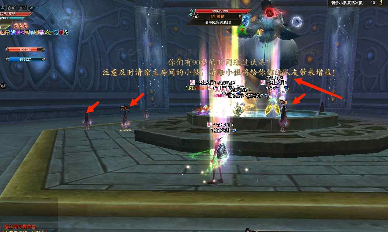 6.最后,若隊(duì)伍攻擊一般,四種機(jī)制四向斬、天地滅群攻、定魂引、義禮智考驗(yàn)將重復(fù)按順序出現(xiàn),直到小房間試煉開(kāi)啟;若隊(duì)伍攻擊高,基本在四向斬、天地滅群攻后就提示小房間試煉開(kāi)啟。