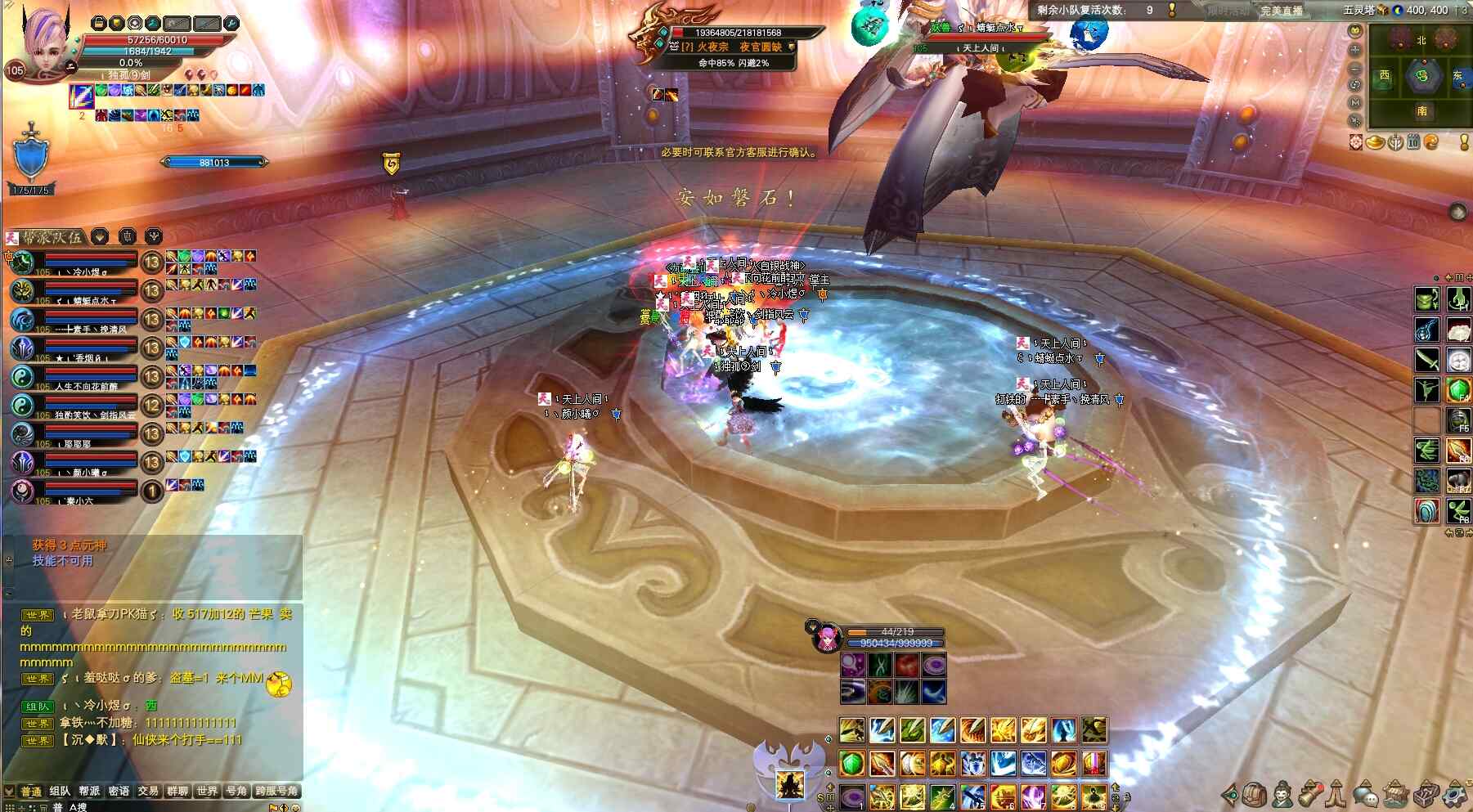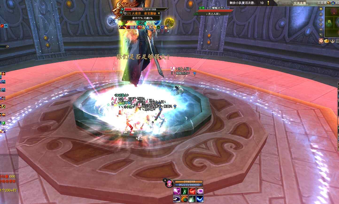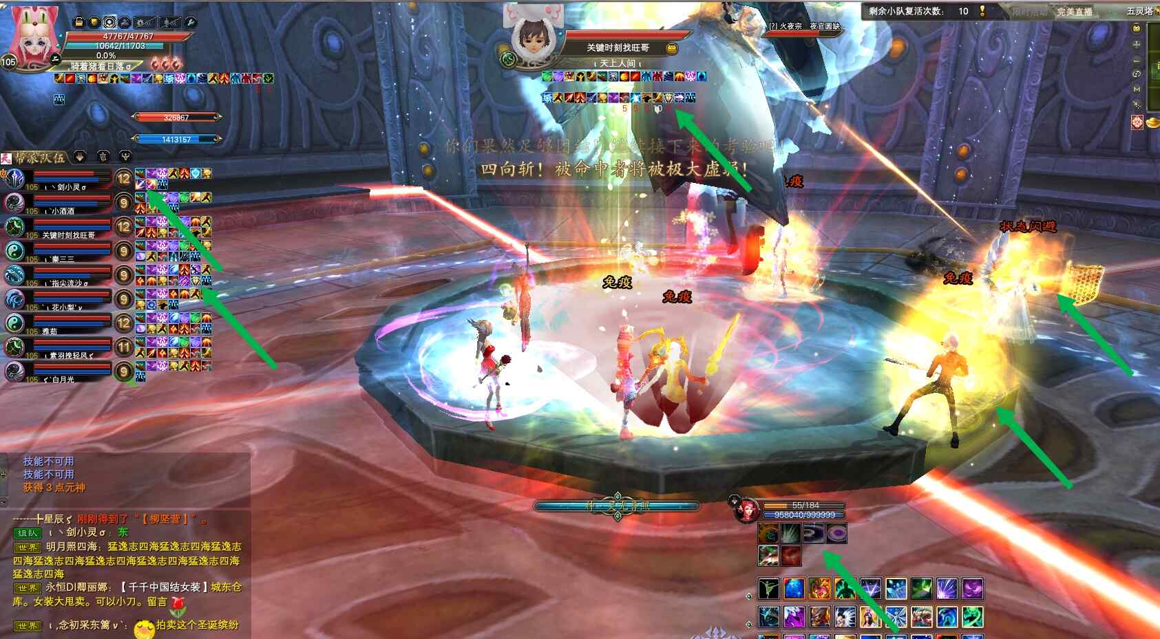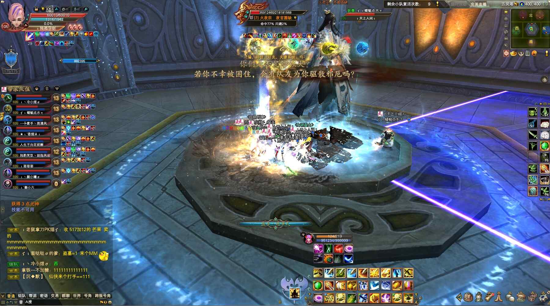 3.天地滅群攻機(jī)制:BOSS喊話“你們是否足夠強(qiáng)大?”---BOSS腳下出紅圈自內(nèi)向外擴(kuò)散,固定高額傷害,境界低防御低血少玩家根本扛不住這波攻擊,無(wú)敵絕對(duì)免死技能可暫時(shí)抵擋。