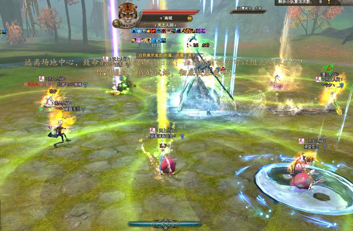 5.正常開怪很快就是第一波解毒,解毒成功后就是出苞子黑水機(jī)制,然后矩形群攻機(jī)制,再180°扇形群攻機(jī)制,當(dāng)BOSS全屏群攻后再次出現(xiàn)苞子黑水機(jī)制,所有機(jī)制都是循環(huán)規(guī)律出現(xiàn),若隊(duì)伍攻擊低這些機(jī)制將多次出現(xiàn),直到BOSS一定血量出現(xiàn)下一次草藥解毒機(jī)制。四次草藥解毒機(jī)制結(jié)束,BOSS按矩形機(jī)制、180°隨機(jī)扇形群攻機(jī)制、全屏群攻機(jī)制、苞子黑水機(jī)制,重復(fù)規(guī)律循環(huán)直到提示“你們通過了我的試煉,徹底戰(zhàn)勝我吧!”。再次提醒,基地6關(guān)對(duì)打手攻擊力、攻擊等級(jí)要求高,劍靈防等越高越好。戰(zhàn)斗結(jié)束,集合等人一起打柱子后出本都記得都交任務(wù),闖關(guān)次數(shù)+1。