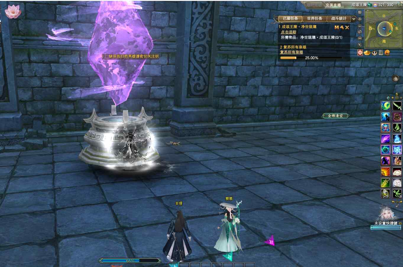 打完后,會自動傳送到凈世琉璃(291.340.)挖取琉璃后,出現(xiàn)三個NPC,對話成頌王(289.340),完成成就:“比翼雙飛無歸意”,獎勵五個天行宮饋印!