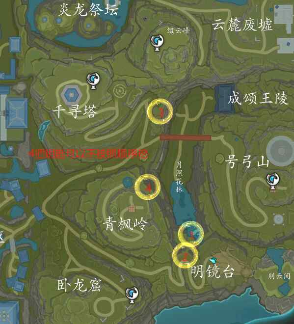 和豐憬(264.315)對話,接取任務(wù),然后到明鏡臺(313.332)和賽慕對話,接到破除封印任務(wù),到(315.331.高度88)挖藤蔓,接到機關(guān)秘鑰任務(wù)。這里的4個秘鑰可以不按照順序挖,而且需要追猴子,所以我們先做追猴子任務(wù)。
