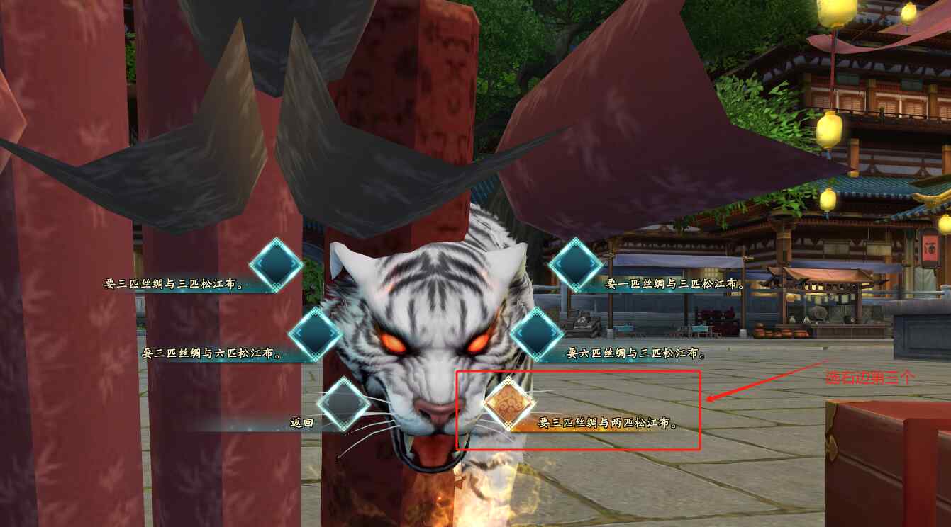 數(shù)月后,再次收到冉遺的信件,帶三匹絲綢和兩匹松江布,前往布坊老板 余晴(160.342)處對話,購買布料!買好后,前往居民區(qū)冉遺的家。