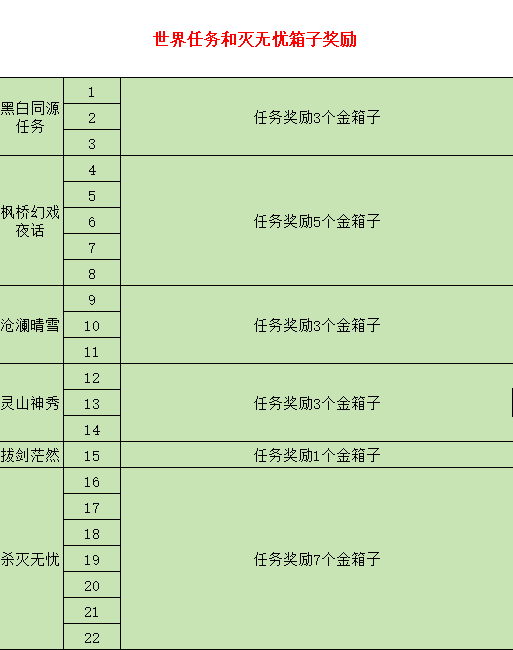 寶匣按照獎(jiǎng)勵(lì)內(nèi)容可以分為:木箱子,銅箱子,銀箱子,金箱子。金箱子只能通過(guò)世界任務(wù)和擊殺滅·無(wú)憂(yōu)任務(wù)獲得。木、銅、銀三種箱子,通過(guò)殺怪,小游戲,直接挖取獲得。不同游戲難度,獎(jiǎng)勵(lì)的箱子也不同,游戲的詳細(xì)玩法我們放在后面一起給大家寫(xiě)哦!不同的箱子,獎(jiǎng)勵(lì)也是不一樣的。具體明細(xì)如下: