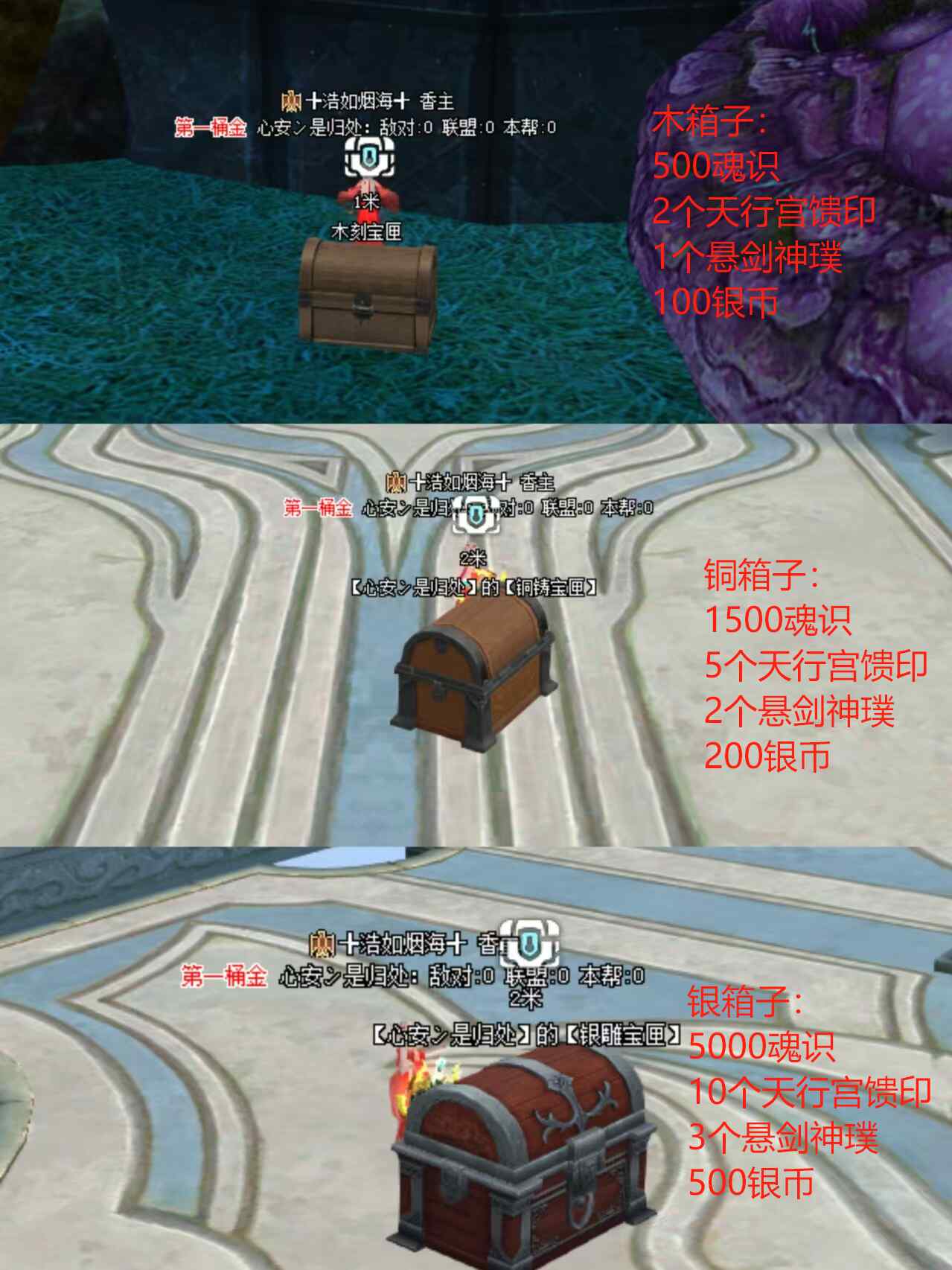 銀箱子:5000魂識(shí)、10個(gè)天行宮饋印、3個(gè)懸劍神璞、500銀幣