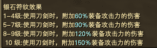 義位技能,神劈星斬月;銀石符文,刀劍技能擁有較高的傷害,和較高的元氣恢復(fù),爆發(fā)技能使用之后或元氣未滿時使用較好。